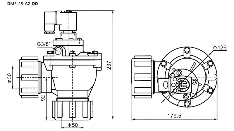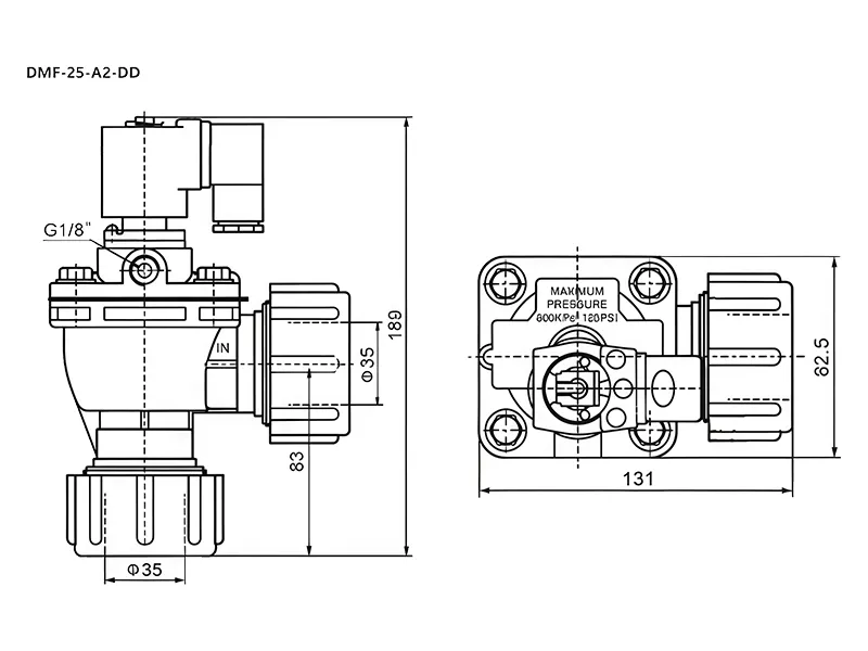 Электромагнитные клапаны серии DMF-Z-DD с пилотным управлением предназначены для промышленных систем пылеулавливания. Конструкция с угловым (90°) каналом потока обеспечивает оптимальную аэродинамику и компактную установку. Корпус из литого алюминия аэрокосмического класса отличается высокой коррозионной и износостойкостью, что делает клапаны подходящими для эксплуатации в тяжелых промышленных условиях. Запатентованная конструкция с фиксирующим стопорным кольцом позволяет быстро заменить катушку без использования инструмента и значительно упрощает обслуживание. Прецизионный мембранный механизм обеспечивает стабильную работу клапана более чем на 1 миллион импульсных циклов, повышая надежность системы и эффективность очистки фильтров.